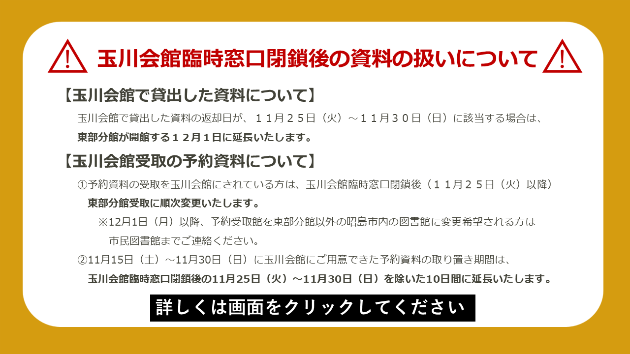 【重要】玉川会館臨時窓口 閉鎖のお知らせ